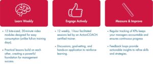 The 12-Week Management Masterclass is a structured journey designed to enhance management skills and build confident, capable managers.